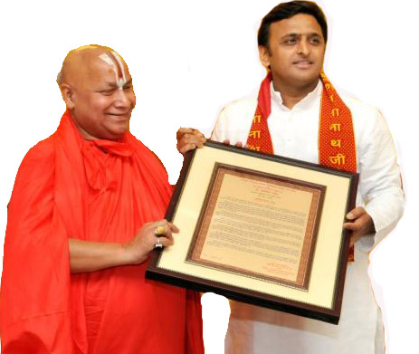 In exercise of the power under UP Jagadguru Rambhadracharya Handicapped University UP ordinance no. 15 of 2001 read with section 10 sub-clause 1, the Government of Uttar Pradesh is pleased to nominate Sri Raghveo Jagadguru Rambhadracharya Ji as life long Chancellor of this University on September 27, 2001.
